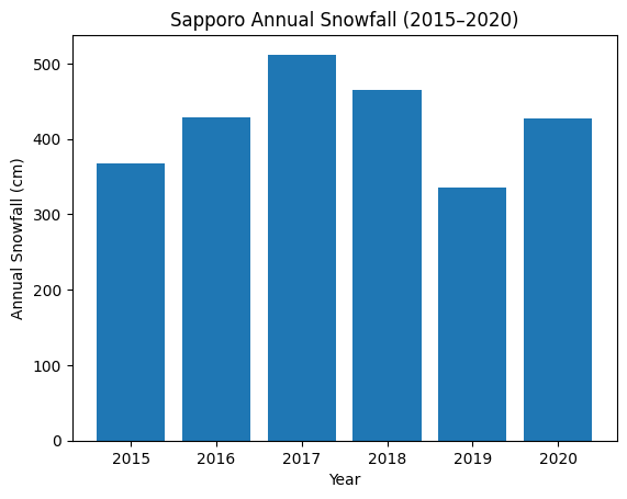 2015年から2020年までの年間降雪量は、もっとも少なかった2019年でも約335cm、もっとも多かった2020年は約427cmに達しています。